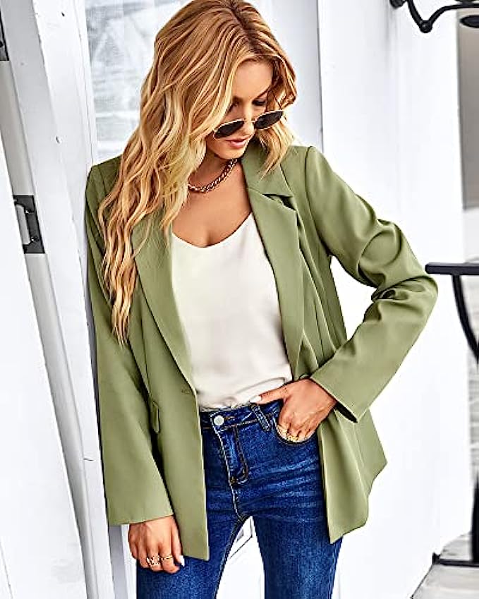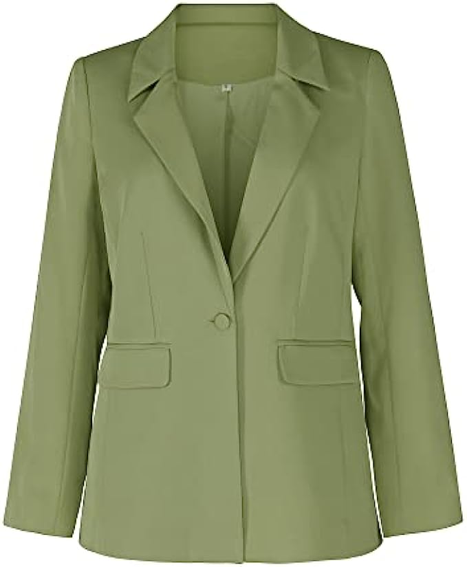 95%Polyester 5%Elastane Imported casual blazer jacket for women Button closure Machine Wash The work office blazer jacket is made of 95% polyester & 5% elastane, skin-friendly to wear all day. Classic Design: The casual blazer comes with one button, long sleeves and two functional flap pockets. This business blazer goes with four color, black blazer/ white blazer/ apricot blazer/ green blazer/khaki blazer, This is one of those open front blazer that is so flattering you want one of every color
