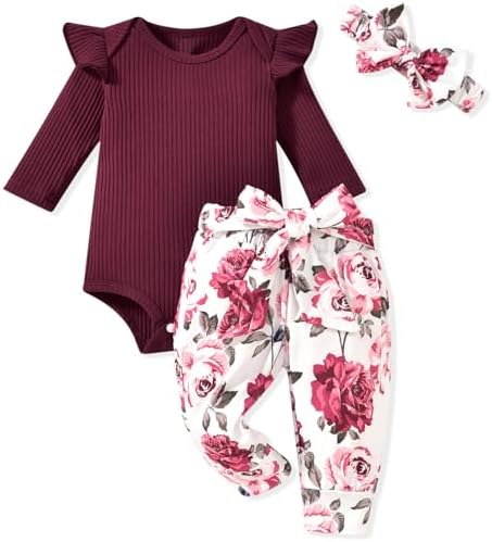 Sponsored Ad - Preemie Newborn Infant Baby Girls Clothes Ribbed Romper Bodysuit Pants Set Fall Winter Outfits