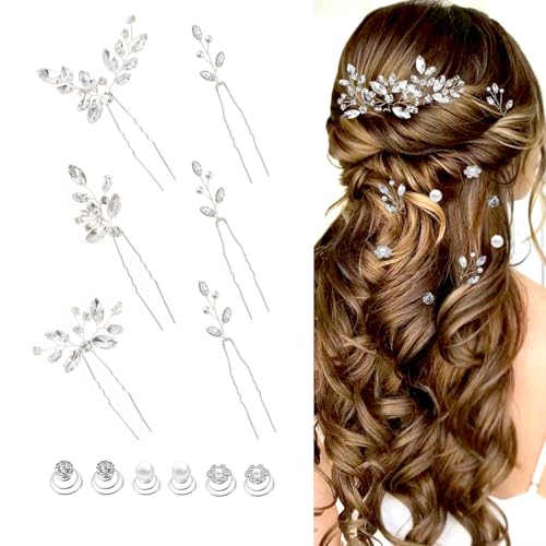 12 Pieces Hair Accessories for Women Pearl Crystal Bridal Hair Pins Wedding HairPieces for Brides Vintage Decorations Bride Bridesmaids
