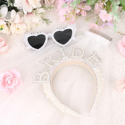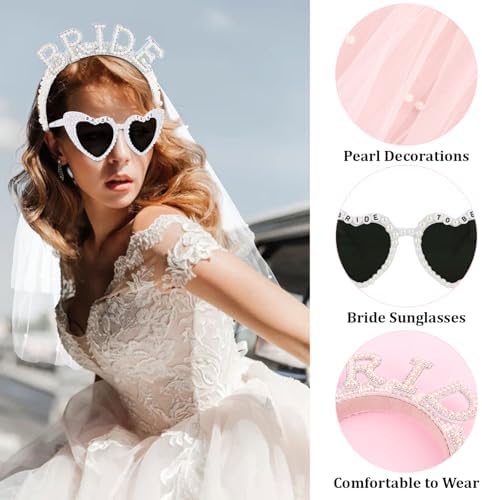 Sponsored Ad - Pearl Headband + Wedding Veil + Bride Sunglasses Set, Bride Veil Heart Sunglasses for Bachelorette Party Decorations Bridal Shower Gifts