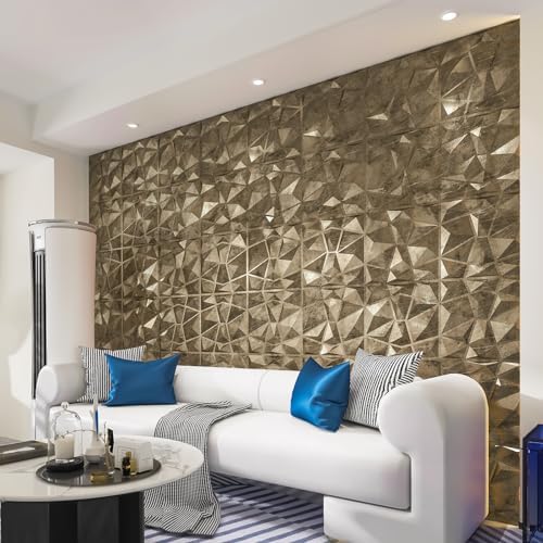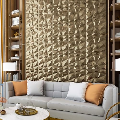 Sponsored Ad - Art3d Textures 3D Wall Panels Antique Gold Diamond Design for Interior Wall Decor Pack of 12 Tiles 32 Sq Ft (PVC)