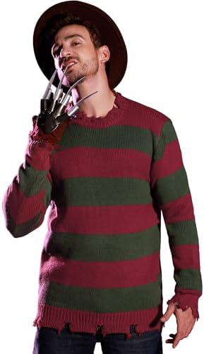 Arvilhill Men's Halloween Freddy Sweater Nightmare Costume Knitted Striped Pullover No Claws M