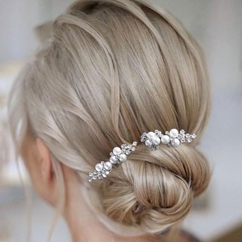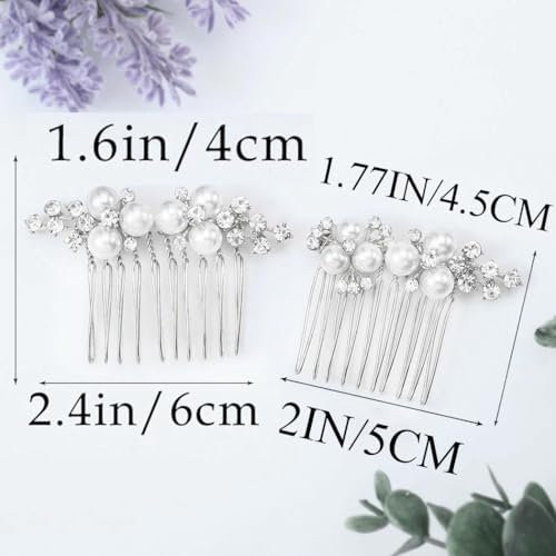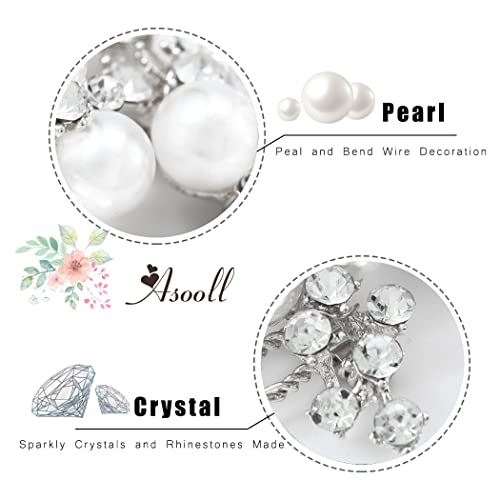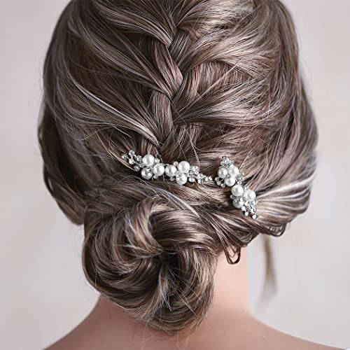 Asooll Gold Wedding Pearl Hair Comb Bride Crystal Headpiece Bridal Rhinestone Hair Clip Hair Accessories for Women(Set of 2) (B-Silver)
