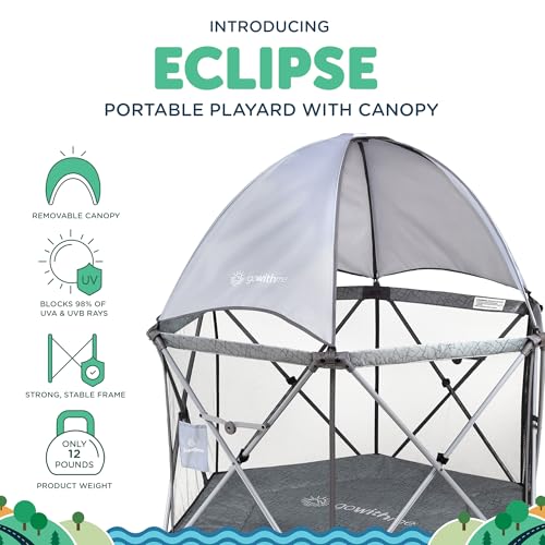 Baby Delight Go with Me Eclipse Deluxe Portable Playard | Playpen | Sun Canopy | Indoor and Outdoor | Ultra Padded Nylon Floor | Elephant Grey