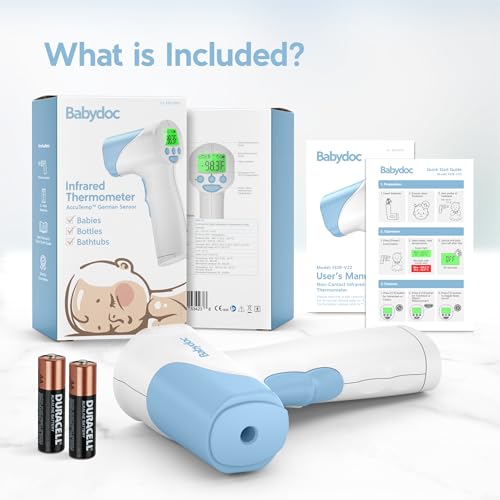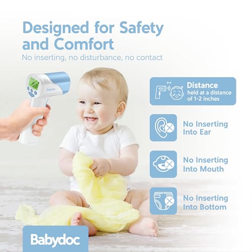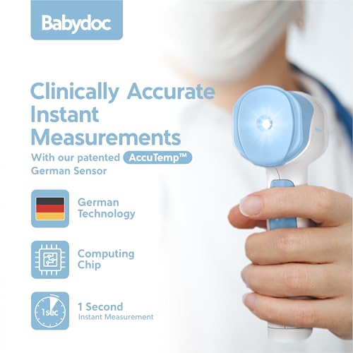 Babydoc Medical Grade FSA-HSA Eligible Baby Thermometer for Kids, AccuTemp German Sensor, 3-in-1 Safe Non-Contact Infrared Forehead Thermometer, Object Mode for Milk or Bathwater, Infants, Children