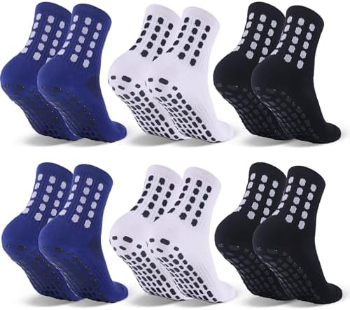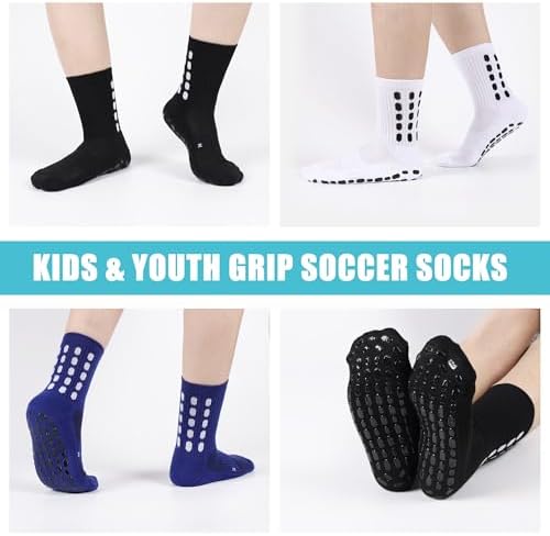 Sponsored Ad - 6 Pairs Kids Grip Soccer Socks Cushioned Non Slip Football Athletic Sports Socks for Boys Girls