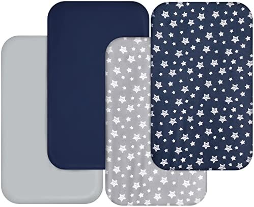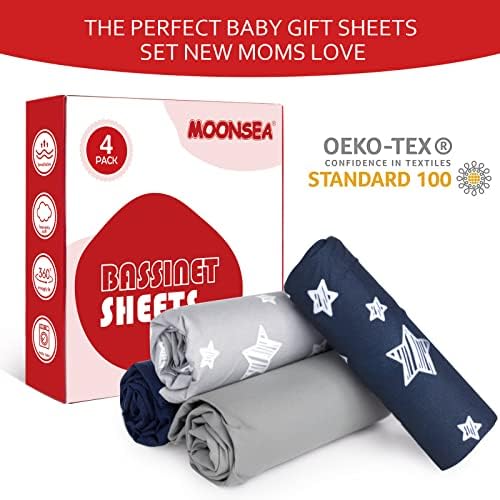 Bassinet Sheets for Boys 4 Pack(33" x 20"), Compatible with Mika Micky, Baby Delight, Dream On Me, Koola Baby, AMKE and Other Rectangle Bassinet Mattress