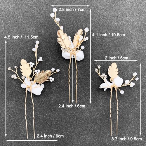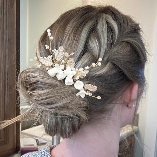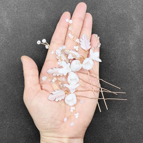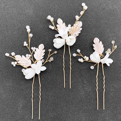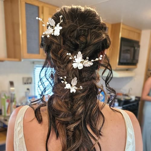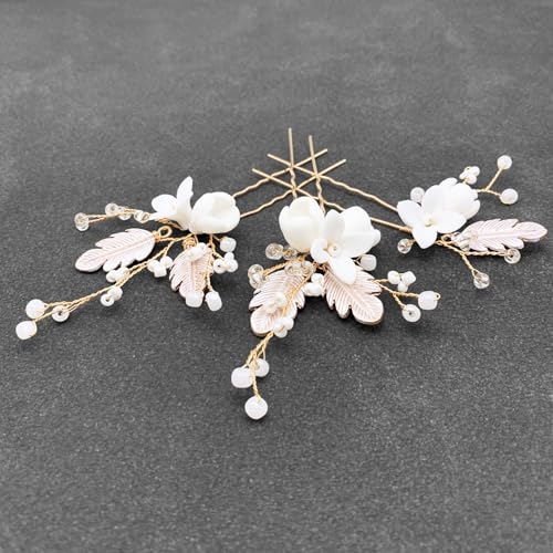 Sponsored Ad - BETITETO Flower Bridal Hair Pins White Ceramic Floral Leaf Wedding Hair Pieces Accessories for Women and Girls(Pack of 3)