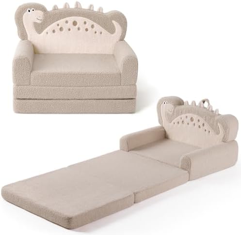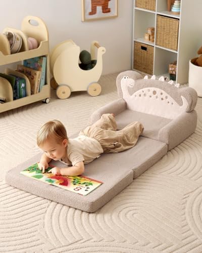 Blissful Diary Foldable Toddler Couch, 2-in-1 Comfy Toddler Chair & Lounger for Reading, Nap, Playroom, Kids Couch Sofa for 1 2 3+ Year Old Girls Boys Baby Birthday Gift, Gray Shell