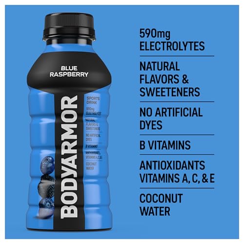 BODYARMOR Sports Drink Sports Beverage, Blue Raspberry, Natural Flavors With Vitamins, Potassium-Packed Electrolytes, No Preservatives, Perfect For Athletes, 12 ounce (Pack of 8)