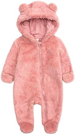 Newborn Baby Snowsuit Fleece Lined Onesie Outfits Warm Hooded Romper for Infant