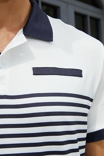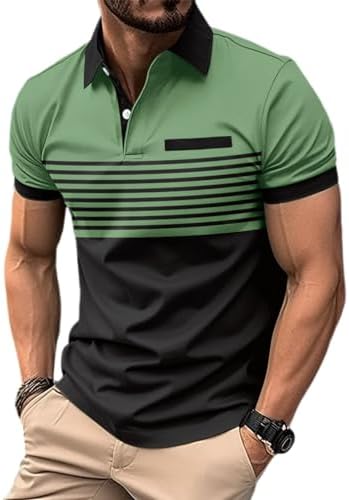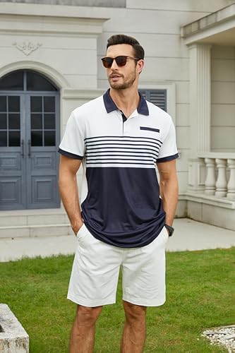 Men's Casual Polo Shirts Short Sleeve Fashion Golf Shirt Classic Striped Slim Fit T-Shirts
