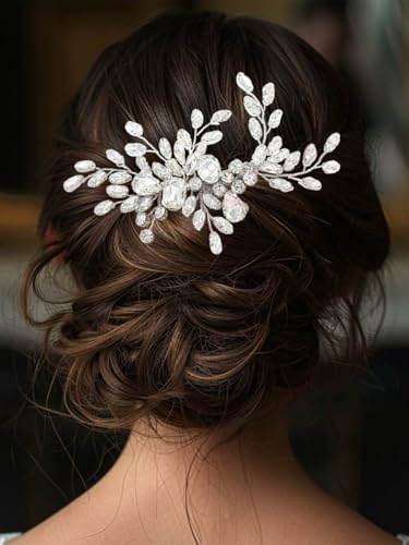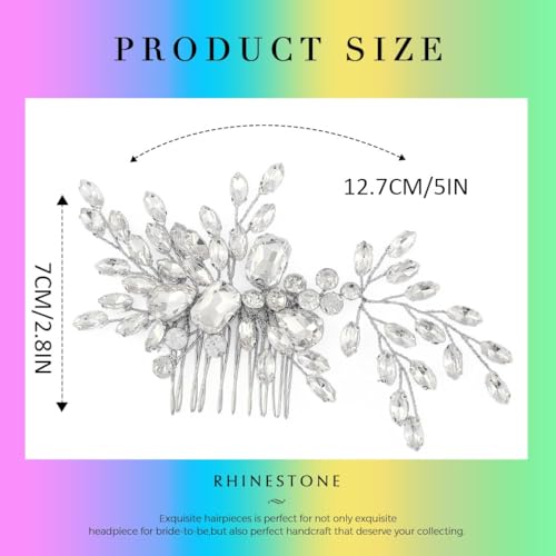 Catery Crystal Bride Wedding Hair Comb Silver Side Combs Bridal Hair Piece Clips Headpiece Hair Accessories for Women and Girls