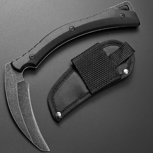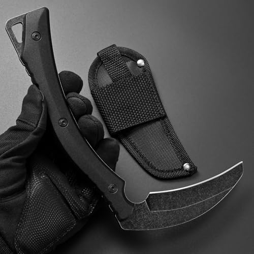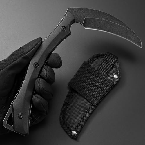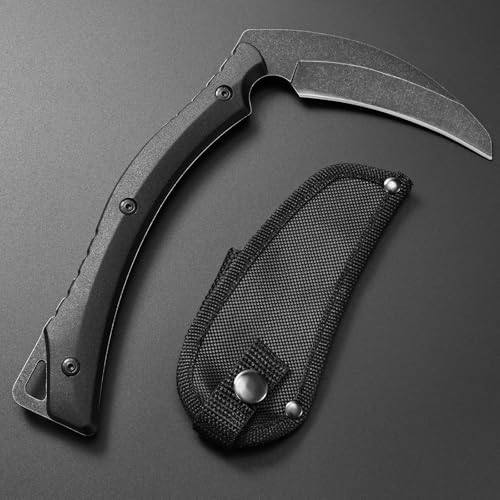 C1398 Camping Axes Billhook Sickle Machete Knife Brush Clearing Sickle Machetes D2 Steel Blade G10 Handle Hatchet for Outdoor Activities,Yard Work, Small Grass Sickle Machete,Harvest Knife
