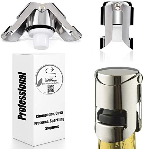 Sponsored Ad - Champagne Sealer Stopper, BGMAX 3 Pack Stainless Steel Sparkling Wine Bottle Plug Sealer Set with a Longer Sealing Plug, Gifts Accessories for Champagne