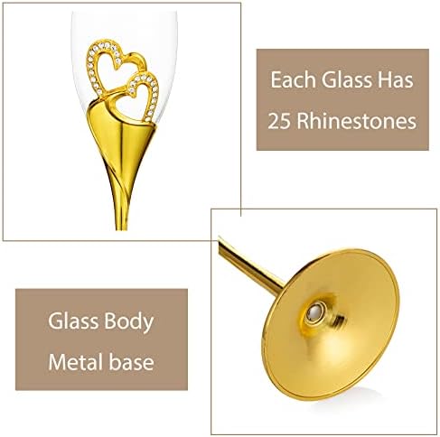 Sponsored Ad - Wedding Champagne Glass Set Gold Toasting Flute Glasses Deluxe Pack of 2 with Rhinestone Rimmed Hearts Decoration for Wedding, Anniversary and Special Occasions