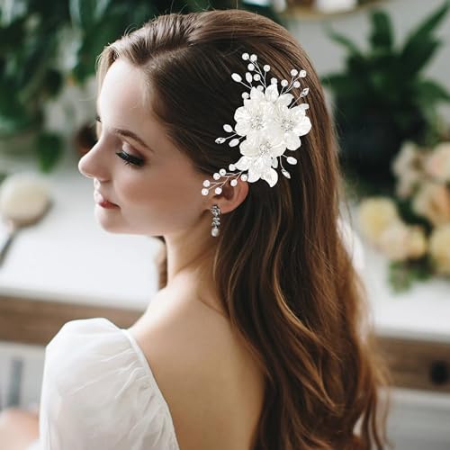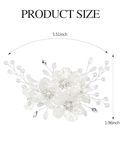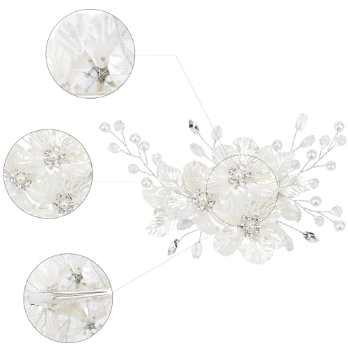 Chanaco Bridal Wedding Hair Accessories Flower Hair Clips and Pieces for Brides - Non Slip Silver Pearl Rhinestones Crystal Fancy Barrettes and Decorations for Women and Bridesmaids