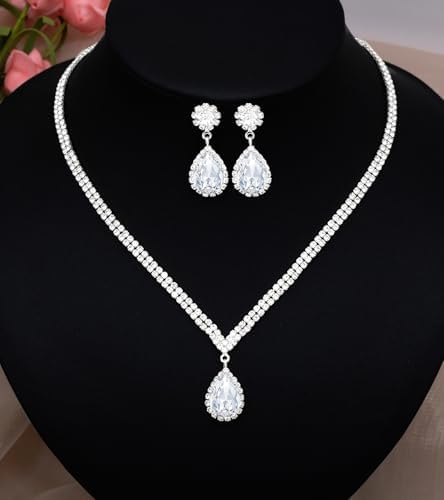 Sponsored Ad - Elegant Silver Crystal Wedding Necklace Earrings Bracelet Jewelry Set for Women Brides Bridesmaids Prom Party Costume Accessory Bridal Jewelry