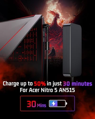 New Slim 135W Charger Fit for Acer Nitro 5 Gaming Laptop AN515-54 AN515-55 AN515-53 AN515-44 AN515-51 AN515-41 AN515-43 AN515-45 AN515-56, ADP-135KB T/ADP-135NB B AC Adapter Power Supply