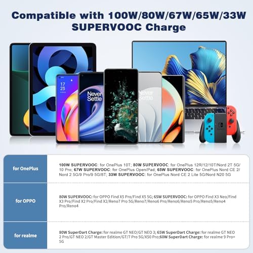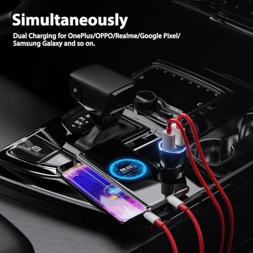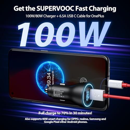 Car Charger for SuperVOOC 100W 80W for OnePlus 13 13R 12R 12 11 10t 10 Pro, 65W Warp Charger for OnePlus Nord N30 N100 Open Pad 9 Pro 8 7T 6T 6 LED Display Dual USB Car Charge Adapter 3.3FT Fast Cable