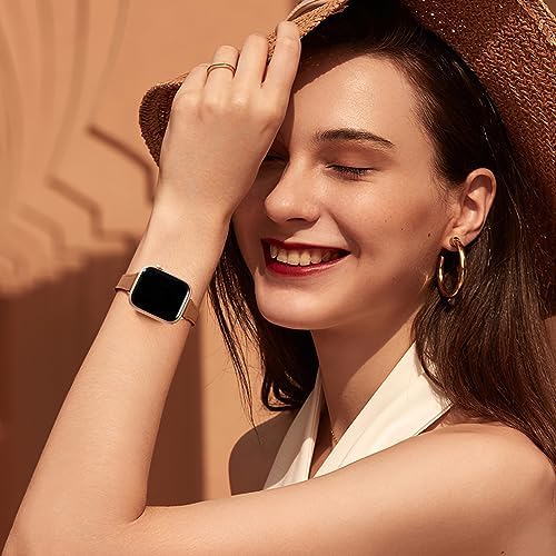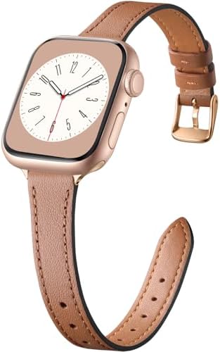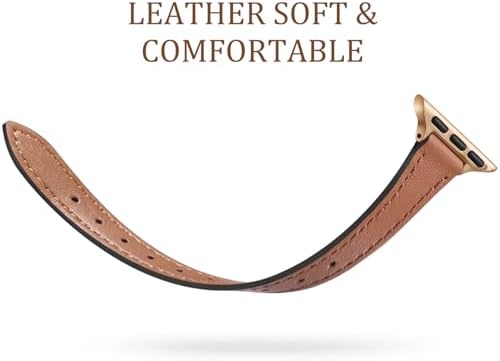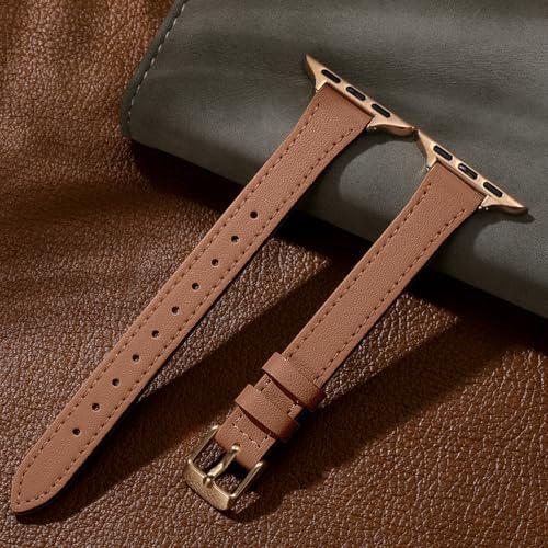 Slim Leather Band Compatible with Apple Watch Bands for Women 40mm 38mm 41mm 42mm 44mm 45mm 46mm, Top Grain Genuine Leather Strap Thin Wristband for iWatch Series 11 10 SE 9 8 7 6 5 4 3 2 1