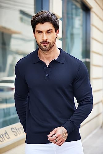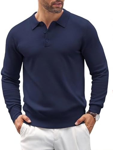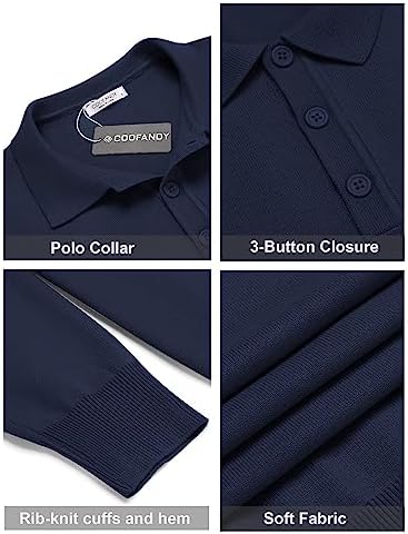 Mens Knit Polo Shirts Casual Long Sleeve Classic Polo Shirts Button Down Golf Shirts