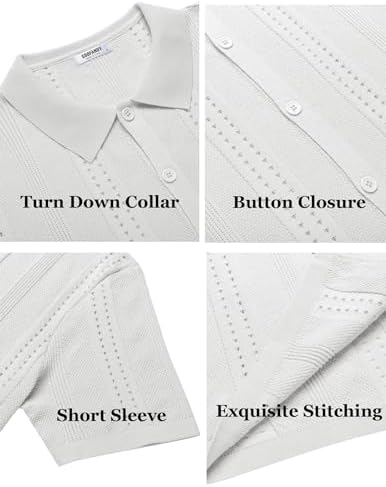 Men's Knit Shirts Short Sleeve Button Down Polo Shirt Fashion Casual Summer Beach Shirts