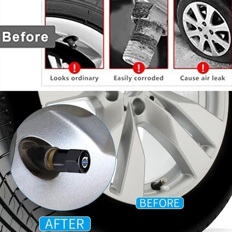 4Pcs Car Tire Valve Stem Caps, Tires Air Caps Cover Corrosion Resistant Tire Valve Cap Accessory for Volvo s60 s90 xc60 xc40 xc90 v60 v90 Series All Models Wheel Cap WOVO_Black