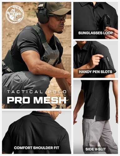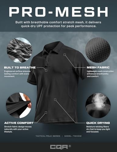 Men's Polo Shirts, Tactical Short Sleeve Golf Performance Shirts, Lightweight Dry Fit UPF 50+ Pique