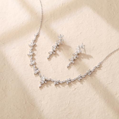 Sponsored Ad - Crysdue Wedding Jewelry Sets for Women Bride Bridesmaid, Elegant Simulated Pearl Cubic Zirconia Cluster Long Dangle Earrings Pendant Necklace for Prom Party Pageant