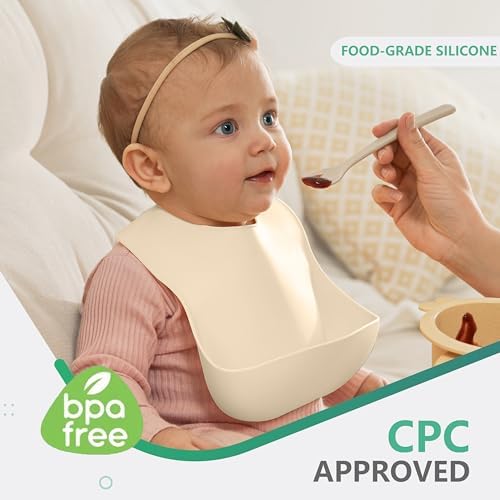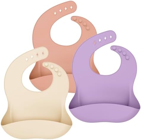 Cuddle Campus Set of 3 Silicone Bibs for Babies & Toddlers,Soft Adjustable Bibs with Pocket Food Catcher for Baby Girl,Boy