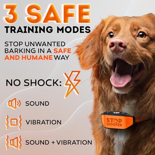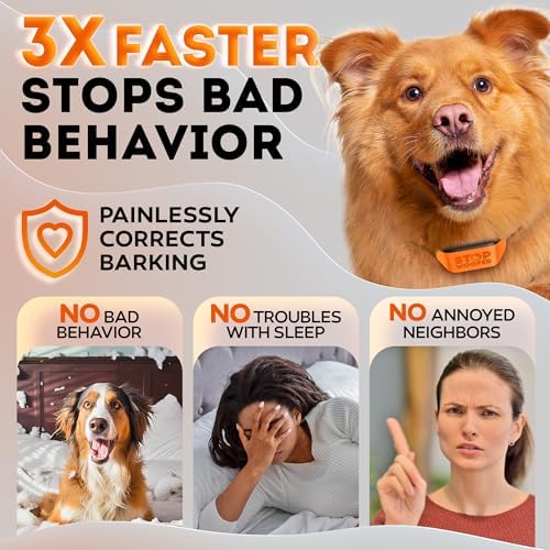 New 2025 No Shock Dog Bark Collar for Small Medium Large Dogs-Smart Chip Adjusts to Stop Barking in 1 Minute-Highly Effective Vibration and Sound Stops Barks Fast with No Pain-Safe Orange