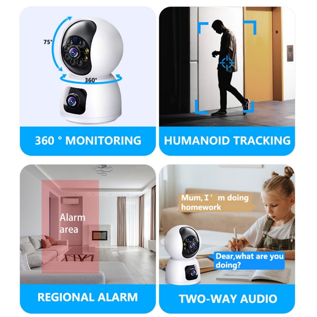 Dual Lens -dual screens CCTV home security camera  Indoor 3MP 2K Two Way Talking Camera Phone Control Built-in Microphone