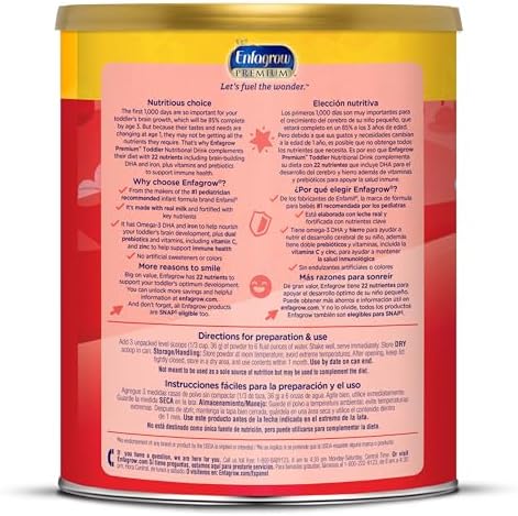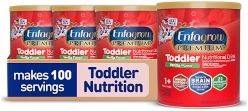 Premium Toddler Nutritional Drink, Vanilla Flavor, Omega-3 DHA for Brain Support, Prebiotics & Vitamins for Immune Health, Powder Can, 32 Oz, Pack of 4