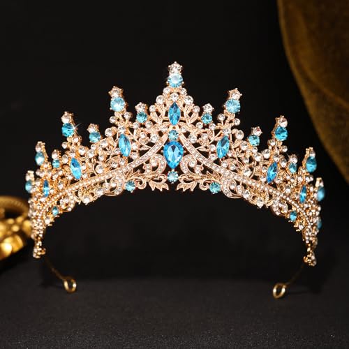 Blue Tiara for Women Crystal Queen Crowns Rhinestone Princess Tiaras for Girl Wedding Headband for Bride Hair Accessories for Halloween Costume Birthday Party Prom Mother's Gifts
