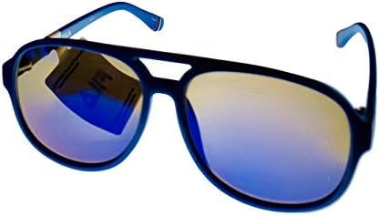 Mens Plastic Matt Blue Rectangle Aviator Sunglass, Blue Flash Lens SF9339 C03B