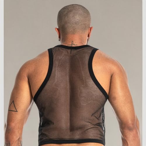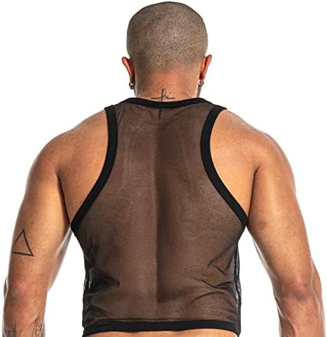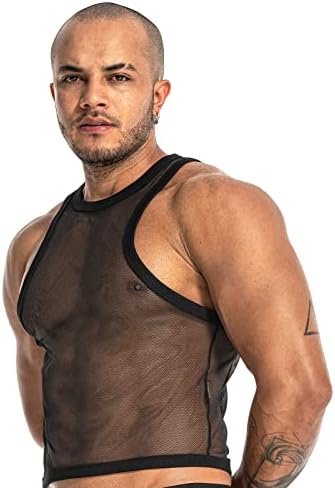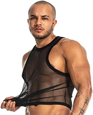 Sponsored Ad - Mens See Through Sleeveless Shirt Mesh Tank Top for Men Crew Neck Fishnet Fitted Muscle Shirt Clubwear