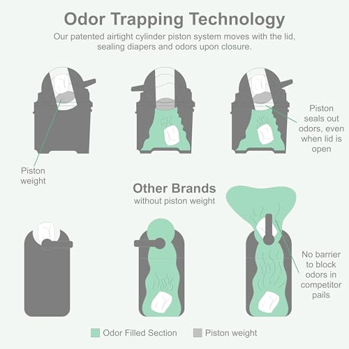Sponsored Ad - Tall Diaper Pail with Airtight Lid - Durable & Odorless Diaper Disposal, Large Capacity, Holds up to 60 Newborn Diapers, Refill with Any Bags, Gray (9612057)