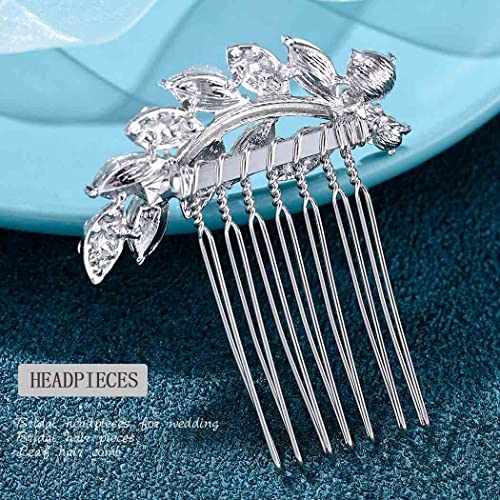 Foyte Crystal Bride Wedding Hair Comb Leaf Bridal Headpieces Rhinestone Hair Pieces Bridesmaid Side Combs Hair Accessories for Women (silver leaf)