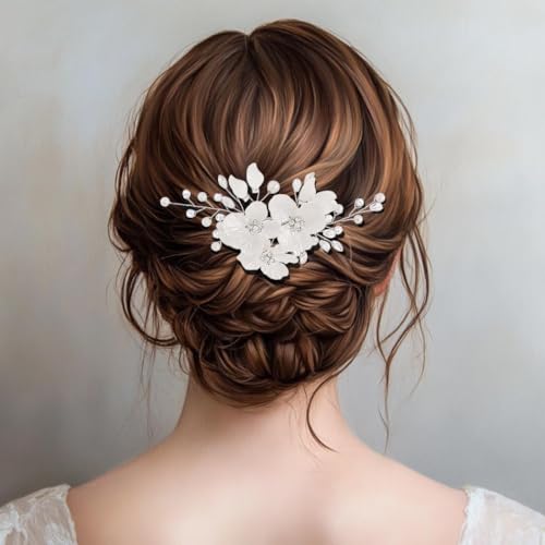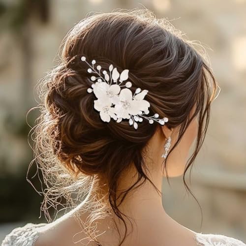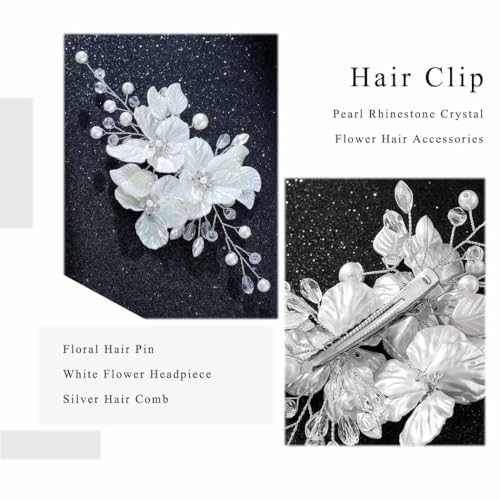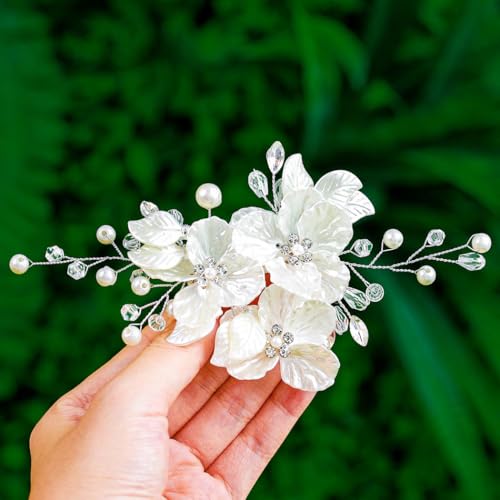 Sponsored Ad - Foyte Bridal Flower Hair Clip White Flower Hair Comb Rhinestone Floral Hairpin Crystal Pearl Hairpieces for Women and Brides
