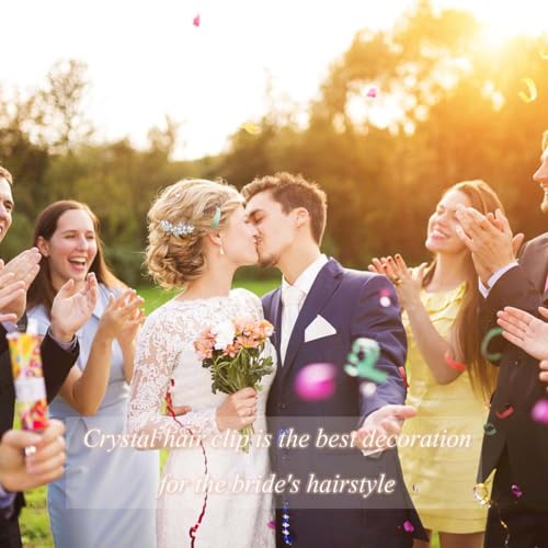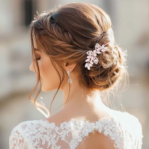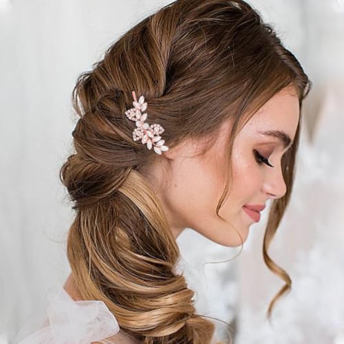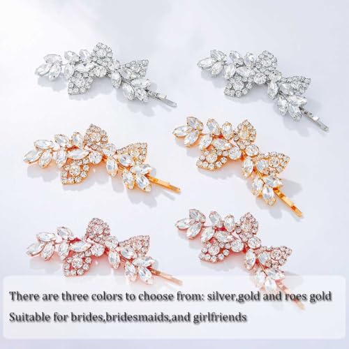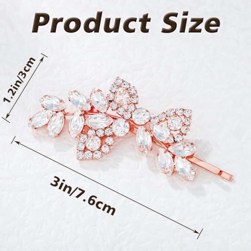 Foyte 2PCS Rhinestone Hair Clips Crystal Wedding Hair Pins Bridal Leaf Headpieces Bridemaid Hair Accessories for Women and Brides (rose gold)