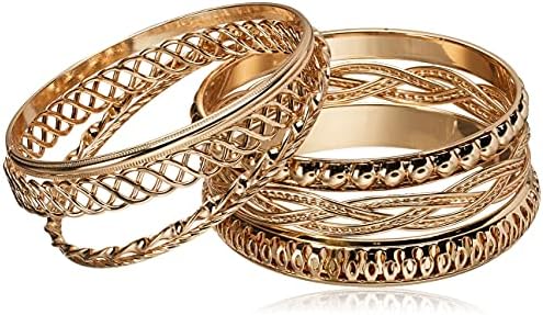 "Basic" Gold 7 Piece Mixed Bangle Bracelet