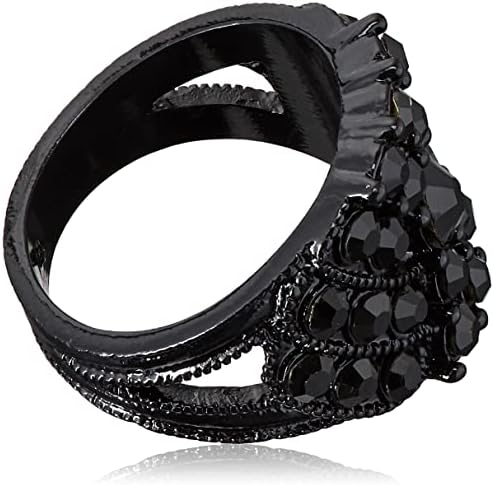 "Basic Jet and Silver Wide Band with Enamel and Stones Ring, Size 8 (89117094)