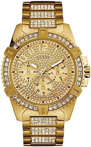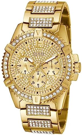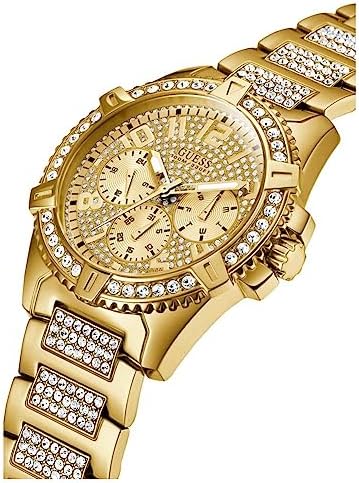 Stainless Steel Gold-Tone Crystal Embellished Bracelet Watch