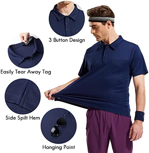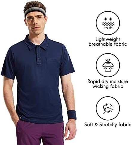 Men's Polo Shirts with Pocket Short Sleeve Quick Dry Moisture Wicking Golf Shirts Business Casual Work Polos
