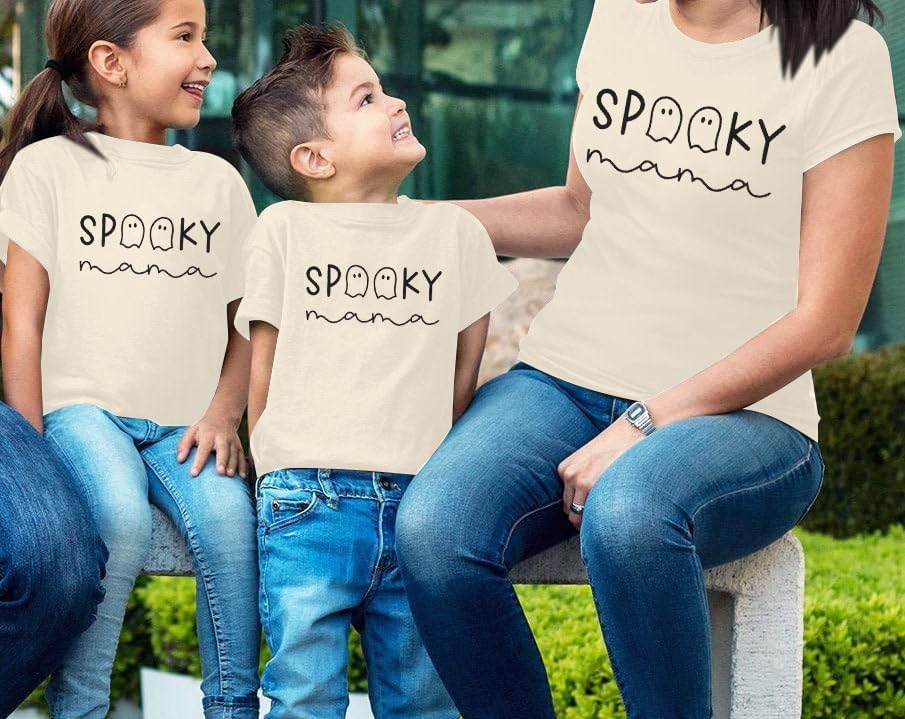 Halloween Matching Mommy and Me Shirts Cute Spooky Mama Spooky Mini Ghost Printed Shirt Fall T Shirts Tops