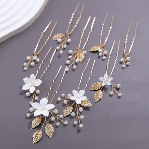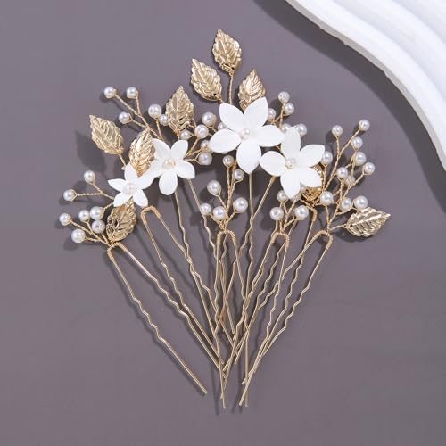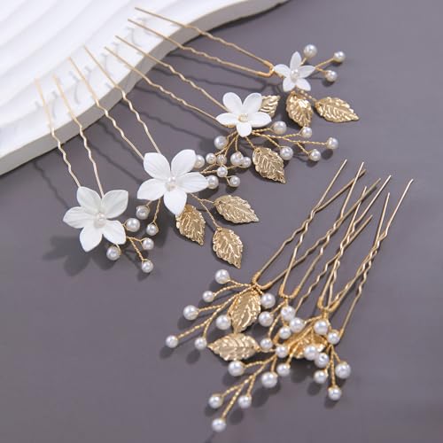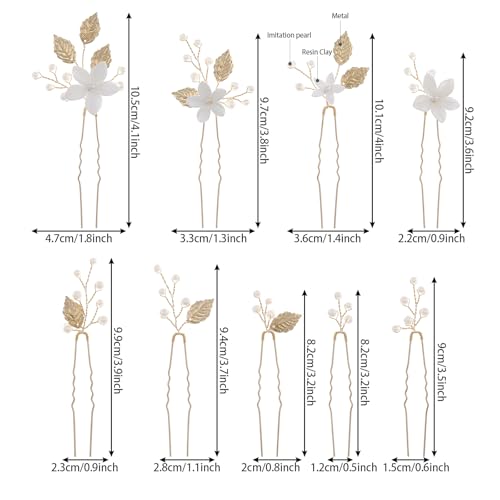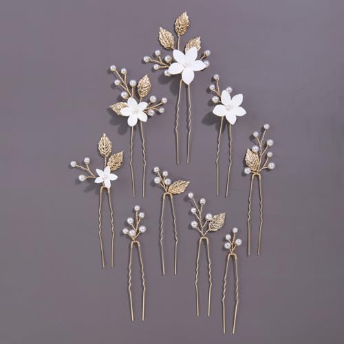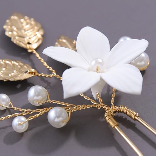 Sponsored Ad - Handmade Pearl Bridal Wedding Hair Pins 9Pcs White Flower Gold Leaf Pearls Clips Bridal Hair Accessories for Women Brides Bridesmaid