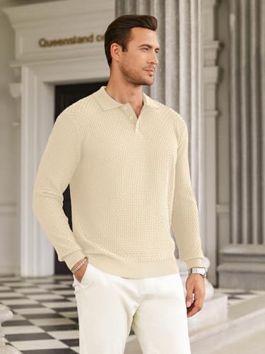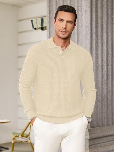 Sponsored Ad - Men's Knit Polo Shirts Long Sleeve Button Up Pullover Sweater Textured Casual Collared Tops