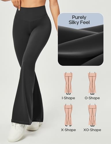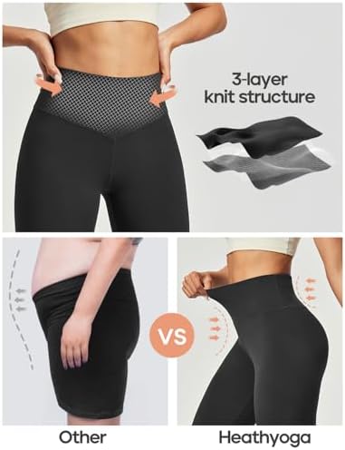 Sponsored Ad - Heathyoga Flare Leggings for Women Tummy Control Yoga Pants Women Flared Leggings with Pocket Bell Bottom Legging Black