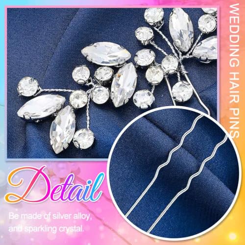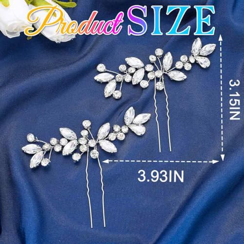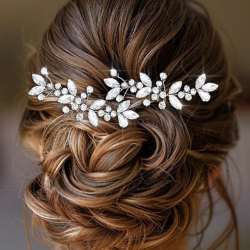 HEREAD Crystal Bride Wedding Hair Pins Silver Rhinestone Hair Piece Hair Accessories for Women and Girls (Pack of 2) (Silver)